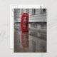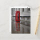 Recuerda tu paseo por las lluviosas calles de Londres con esta toma y postal de una caja de teléfono roja que refleja la calle húmeda.