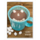 Bebida de chocolate caliente con cara feliz de malvavisco en una taza turquesa para el solsticio de invierno
