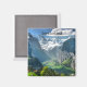 Refrigerador imán que muestra el impresionante paisaje de Suiza que muestra enormes acantilados, nevados Alpes suizos, cascadas y las ciudades de Wengen y Lauterbrunnen y las cascadas de Trummelbach.
