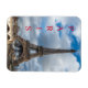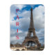 Una vista clásica de la Torre Eiffel de París impresa en un imán de recuerdo para refrigeradores.