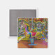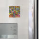Fotografía de cerca de caballos coloridos sobre una envolvente estampada en un imán cuadrado de refrigerador.