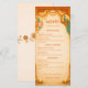 Elegant tall menu card for an Indian wedding or Sangeet. Featuring luxury gold motifs on a rich saffron background. Fully customizable for your wedding feast menu.
