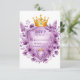 Esta exquisita plantilla de invitación a la boda incluye una corona real de oro adornada con joyas amatistas, enclavada sobre un escudo heráldico enmarcado en oro. Alrededor del diseño hay lujosas tortillas de lavanda y violeta, creando un lujoso motivo floral vintage. Perfecto para bodas románticos de temática real o celebraciones elegantes con un toque nobiliario y floral. El blindaje en blanco proporciona espacio para nombres, fechas o mensajes personalizados.