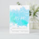 Moderna y abstracta salpicadura de color azul acuático y estrella de mar y gaviotas de playa boda RSVP respuesta o carta de respuesta con pintura acuarela pintada a mano salpicada con textura en tonos azul y turquesa, dos peces estrella y gaviotas en blanco y texto en blanco y gris. Este elegante y elegante diseño boda casual es un modelo de personalizable perfecto para su boda de verano o destino. Tenga en cuenta que esto es sólo una imagen de acuarela y no textura real. Para obtener los mejores resultados, elija papel con textura.