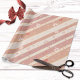 Papel envuelto con un patrón rayado en cálidos tonos rosados y rojos con canto de aves y corazones amorosos.