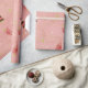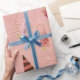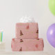 Envuelve tus regalos en este singular y caprichoso Papel envuelto de árbol de Navidad. Fondo rosa con rayas y paisajes.
