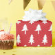 Envuelve tus regalos con estilo con papel de envoltura de personalizado de Árboles de Navidad. El elegante papel de envoltura de vacaciones presenta un patrón rústico blanco de árbol de Navidad con un fondo rojo.