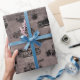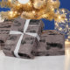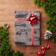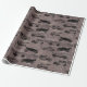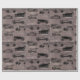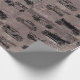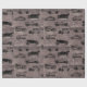 Dibujos de una variedad de autos antiguos o antiguos en un fondo de color taupe con piedras de ladrillo e impresos de periódico. Envuelve un regalo perfecto para un amante de los mayores.