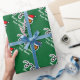 Papel de embalaje de las Felices Navidad con baloncesto del gorra de Santa. Diseño lindo del día de fiesta para los jugadores y los aficionados deportivos. Papel de regalo divertido de Navidad para los hombres, las mujeres y los niños (muchachos y chicas). Personalizable con nombre y el saludo de encargo. Colores verdes y rojos. El color de fondo es adaptable.