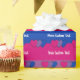 Envuelto papel con la bandera del orgullo bisexual con corazones pequeños en el centro del diseño. Bandera rosa, púrpura y azul del movimiento del orgullo bi; con un campo de texto modificable para su nombre o mensaje