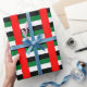 ¡Eleva tus regalos con nuestro papel de envoltura con la bandera de los Emiratos Árabes Unidos! Diseñado para celebrar la herencia de los EAU y la identidad cultural, este documento de presentación muestra de manera prominente los icónicos colores negro, blanco, verde y rojo de la bandera de los EAU, simbolizando la unidad de la nación y la rica historia. Perfecto para cualquier ocasión, ya sean cumpleaños, vacaciones o eventos especiales, este papel de envoltura añade un auténtico toque emiratí a tus regalos. Ya sea cubriendo pequeños tokens de apreciación o grandes regalos, refleja su admiración por los EAU con cada paquete. Impreso en papel de alta calidad con un acabado brillante, nuestro papel envolvente de bandera de los EAU garantiza colores y durabilidad vibrantes. El diseño de la bandera está bellamente reproducido, haciendo de cada presentación de regalo una declaración mientras muestra su legado emiratí. Tanto si envías regalos para un entusiasta de los EAU como si le agregas un toque patriótico a tus celebraciones, este envuelto es una elección significativa y simbólica que combina estilo con orgullo cultural.