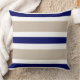 Almohada de tiro del diseñador de la raya del beige, de los azules marinos y del blanco hecha en el regalo de América de zazzle.com/americanmademojo*.
