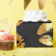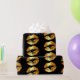 Papel de embalaje de lujo con falsos besos de oro de los labios en un fondo negro. Papel de embalaje distinguido.