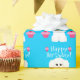 Feliz cumpleaños caprichoso y lindo Bichon Frise con el papel de regalo de las magdalenas