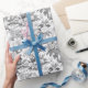 Disfrute de la elegancia intemporal con este romántico papel de envoltura de estilo chinoiserie en blanco y negro, perfecto para bodas, cumpleaños y más.
