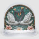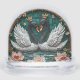 Una obra de arte detallada con dos cisnes con coronas, picos tocantes dentro de un intrincado marco adornado con flores coloridas y elementos de mosaico, que simbolizan el amor, el compromiso y la belleza.