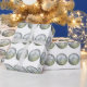 Regalo Bolas de plata sobre papel de envolver blanco