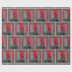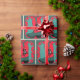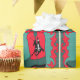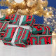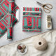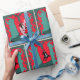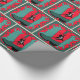 Papel de envoltura de regalo occidental con una bota de vaquero que tiene un diseño adecuado. El fondo tiene un color verde verde azulado con patrones de puntos y un marco de remolque rojo.
