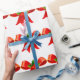Regalo Bow Rojo Con Papel De Envoltura Blanco Holly