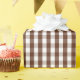 Un papel de embalaje diseñó con un modelo marrón y blanco de la guinga en talla media.