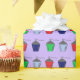 Patrón colorido de pequeños farolillos de Bryn Mawr en todos los colores de clase, rojo, verde, azul claro y azul oscuro, sobre fondo lila púrpura. Ilustracion de mano. Es lo que un alumno o estudiante de Bryn Mawr debe regalar por cumpleaños o por las vacaciones.