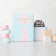 Regalo Bunnies rosas sobre papel de envolvimiento azul