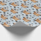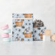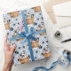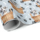 Un adorable cachorro dálmata sentado en una cesta de mimbre es la característica del patrón en este papel de envoltura de regalo para todas las ocasiones. El retrato es en medio de un patrón de huellas de pata negra y huesos blancos, y se repite en un fondo azul plateado. ¡Perfecto para cualquier amante del perro dálmata!