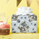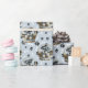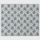 Un adorable cachorro Schnauzer Terrier en miniatura que asoma a una cesta de mimbre es la característica del patrón de este papel de regalo de ocasión. El retrato es en medio de un patrón de huellas de pata negra y huesos blancos, y se repite en un fondo azul plateado. ¡Perfecto para cualquier amante del perro Schnauzer!