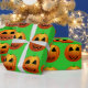 Las calabazas de naranja en un brillante diseño de fondo verde envolvente de papel serían perfectas para una fiesta o regalo de Halloween. Elija entre diferentes longitudes y estilos.