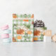Papel de envoltura de bonito de cheque verde y blanco cubierto en calabazas naranjas