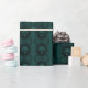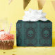 Damasco de cameo inspirado en el cráneo inspirado en Victoria sobre un oscuro fondo verde esmeralda.
