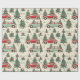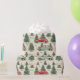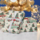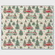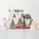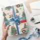 Papel de envolver colorido muestra autos extravagantes rodeados de árboles navideños decorados, estrellas y copos de nieve, creando una deliciosa atmósfera navideña perfecta para envolver regalos.