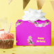 En un diseño semicircular, pintado de rosa, se encuentran cerdos de Guinea y flores con un texto de feliz cumpleaños