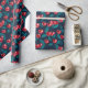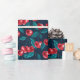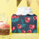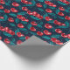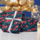 Regalo Cerezas rojas sobre papel de envoltura azul oscuro