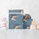 Regalo Cernícalo volador sobre papel azul de envoltura