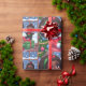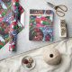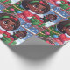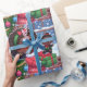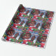 Diseño de papel envolvente caprichoso con una chica negra animada vestida con atuendo festivo, su cara se iluminó con alegría mientras exhibía orgullosamente su recién desenvuelta muñeca negra. Los copos de nieve y los elementos festivos personalizados que caen suavemente crean un entorno lúdico, que captura la magia de los regalos durante la temporada de vacaciones.