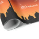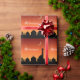 Ilustracion del saludo de Eid con una escena del cielo de la tarde: silueta de una mezquita en un cielo rojo de la tarde.