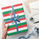 SEAM DE COINCIDENCIA: Navidades envueltos de papel en franjas verdes, blancas y rojas. Consulte la colección de papeles coincidentes de esta serie Incluyendo sólidos que coinciden con las rayas.