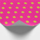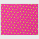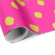 Este papel de envoltura está cubierto de puntas de polka verde lima llamativas sobre un fondo de fucsia.