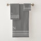 Este juego de toallas de baño gris con rayas grises claras es perfecto para casi cualquier decoración.  De color neutro con un diseño simple a rayas.  Monograma con tus iniciales.  El juego incluye toalla de baño, paño de lavado y toalla de mano.  Ideal como regalo o para comprar toallas nuevas para tu baño.