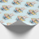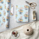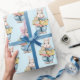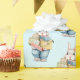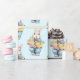 Celebra el primer cumpleaños de tu hijo con este lindo regalo de cumpleaños. El diseño incluye un conejito con un montón de regalos de cumpleaños. El fondo es un sutil patrón azul claro.