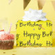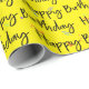 Divertido guión de texto feliz de cumpleaños con colorido confeti fiesta en el fondo amarillo. Se puede cambiar el color de fondo.