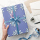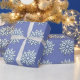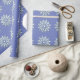 El papel de embalaje del navidad mostrado en bígaro con los copos de nieve lindos imprime. Fondo azul helado. Modifique este artículo para requisitos particulares o cómprelo como es.