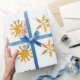 Elegantes copas de nieve doradas para sus vacaciones de invierno. Envoltura especial de regalo.