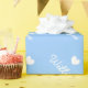 Corazón del papel de embalaje el | y nombre azules lindos del bebé. Giftwrap adorable para los presentes originales de la fiesta de bienvenida al bebé. Modelo azul y blanco del corazón del amor para los niños.