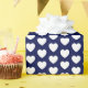 Papel de envoltura con corazones blancos sobre fondo azul marino. Personalizar el color de fondo entre otras opciones.