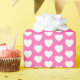 Regalo Corazones, blanco sobre papel de envolver rosado