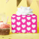 Papel de envoltura con corazones blancos sobre fondo rosado caliente. Puede elegir el color de fondo de su preferencia.