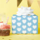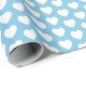 Papel envolvente con corazones blancos sobre fondo azul claro. Puede elegir el color de fondo de su preferencia.