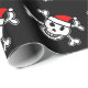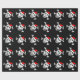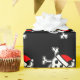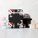 Diseño alegre del cráneo del papel de embalaje del navidad de Rogelio el | Santa. El papel de regalo divertido de Navidad con el esqueleto y los huesos piratean la cabeza que lleva un gorra rojo de Papá Noel. Color de fondo negro adaptable.